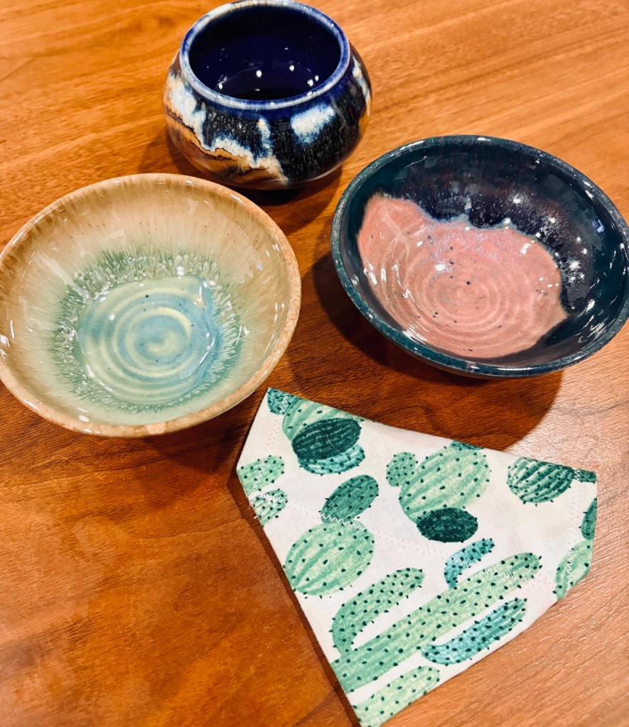 私たちは陶器のお皿と、犬の首に巻くサボテン柄のスカーフを購入。